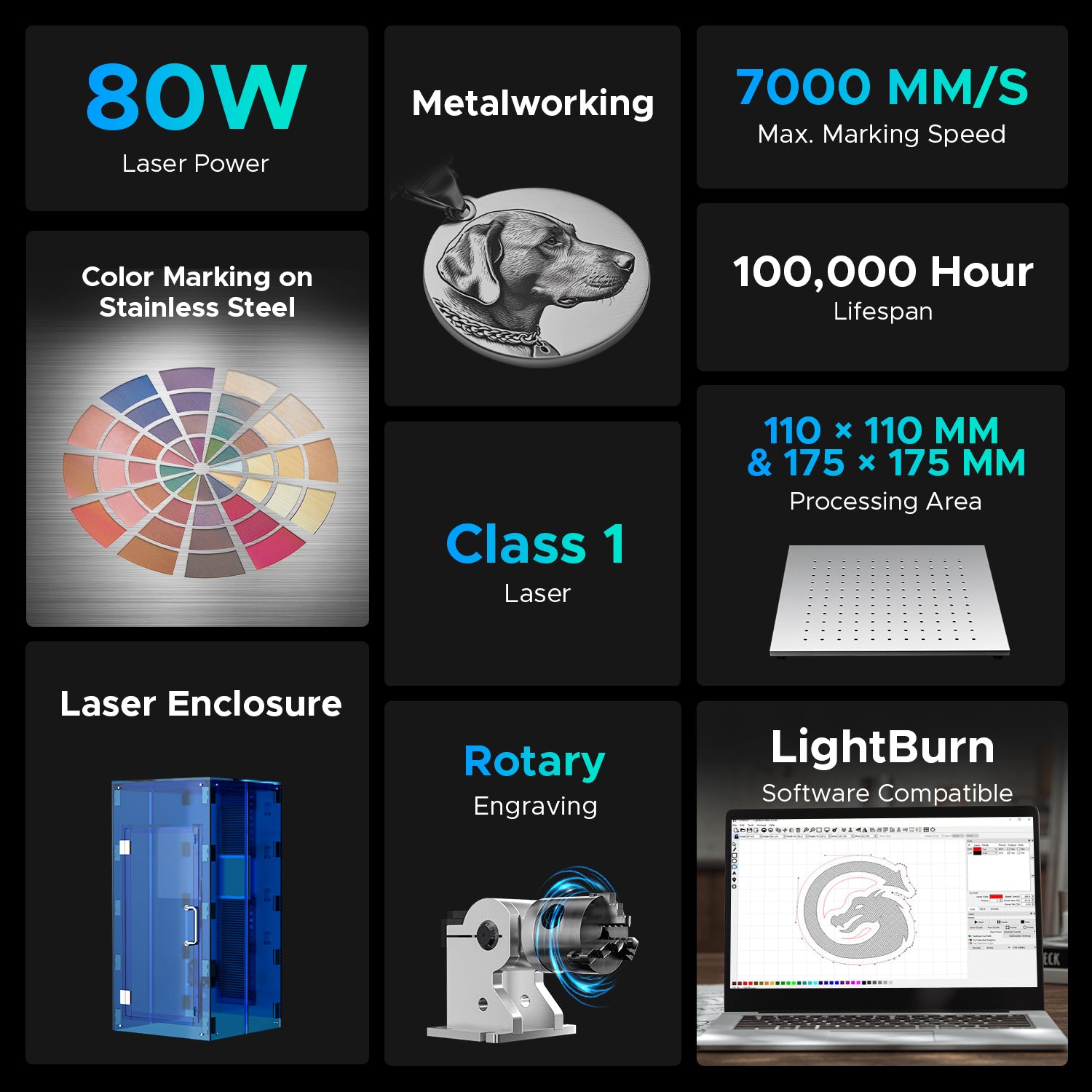 80W MOPA JPT Laser Cutting Machine for Colored Metal Engraving & Metal Cutting | M-80