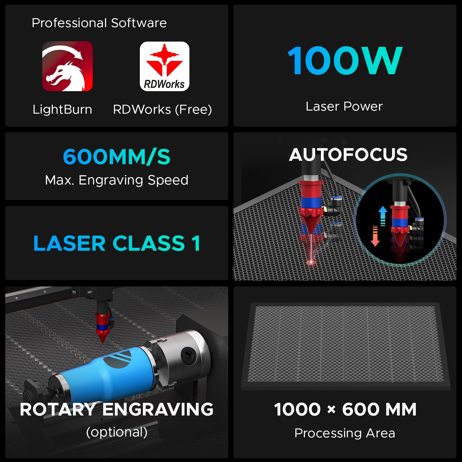 100W CO2 Laser Engraving Machine & Cutter with 1000x600mm Engraving Area and Autofocus| PRONTO 45