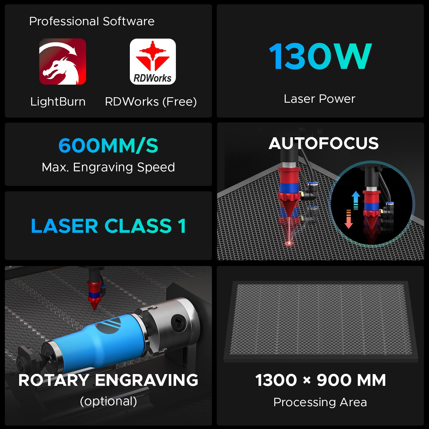 130W CO2 Laser Engraving Machine & Cutter with 1300x900mm Engraving Area and Autofocus | PRONTO 60