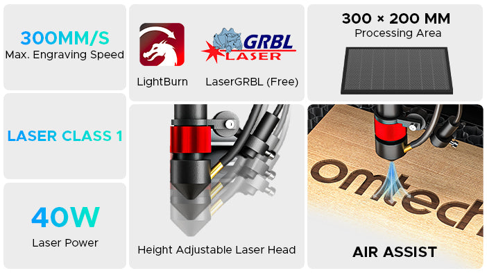 The OMTech 40W CO₂ laser engraving machine combines sleek design with compact dimensions (81×50×25 cm) and a lightweight 23 kg build—ideal for beginners and tight workspaces. This desktop-sized engraving machine fits seamlessly into any home or hobby setup.