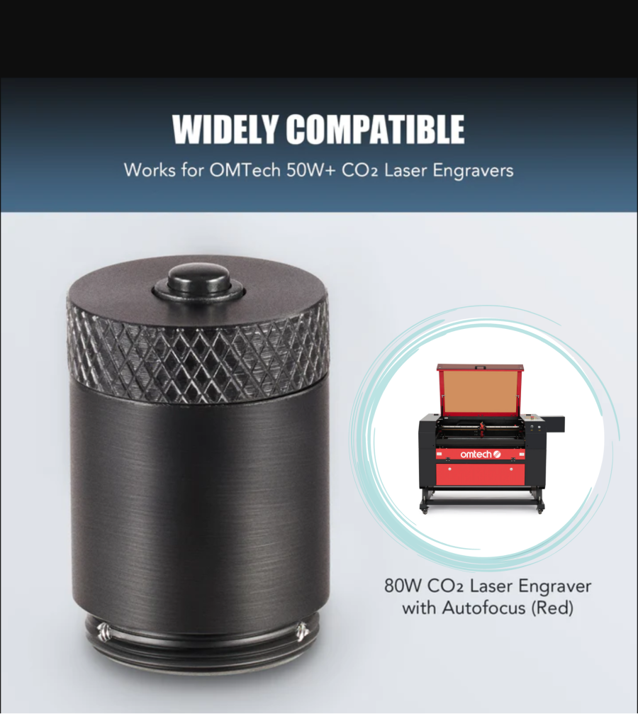 • Compatible with OMTech CO2 Laser Engravers 50W and above (except the AF2028-80 - 80W 20x28 inch with autofocus)