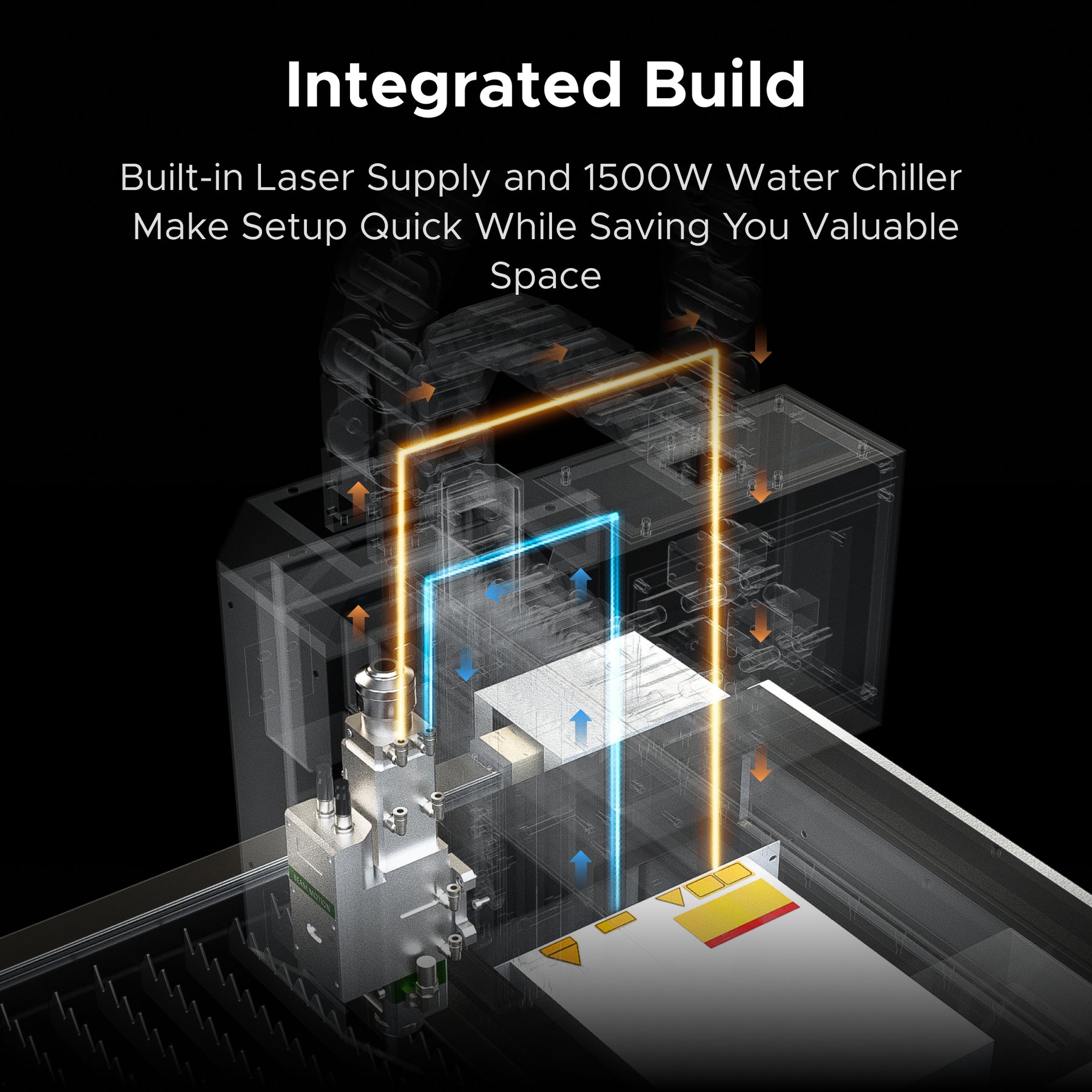 With a 1500W water chiller and laser supply already integrated, this machine eliminates complicated setups,