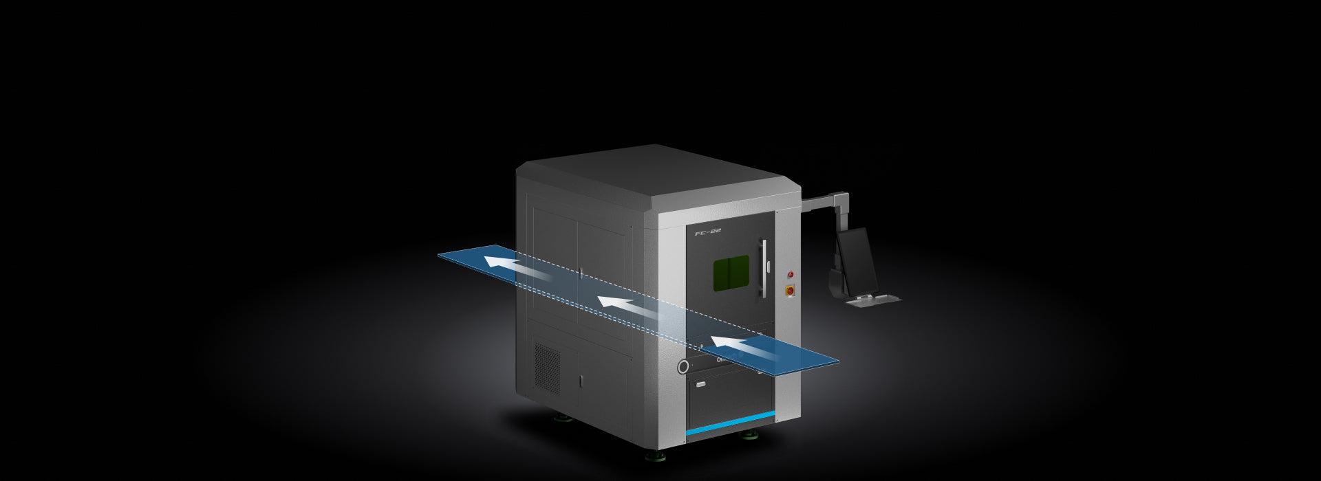 Model: FC-22 Max. Input Power: 12 kW Laser Rated Power: 1500 W Wavelength: 1080 nm Rated Voltage/Frequency: AC 220 V, 60 Hz Processing Area: 23.6×23.6 (in.)/ 600×600 (mm) Front Pass-Through Size: 23.6×1.97 (in.)/ 600×50 (mm) Back Pass-Through Size: 23.6×1.97 (in.)/ 600×50 (mm) Max. Material Height: 0.39 in./ 10 mm Max. Cutting Depth (Carbon Steel): 0.39 in./ 10 mm Positioning Accuracy: ±0.0019 in./ ±0.05 mm Work Table Maximum Load: 110 lb./ 50 kg Max. Processing Speed (Idle): 1.96 IPS/ 50 mm/s X/Y Axis Max Speed: 19.68 IPS/ 30 m/min X/Y Axis Max Acceleration: 231.5 ips²/ 0.6G X-Axis Travel: 23.6 in./ 600 mm Y-Axis Travel: 23.6 in./ 600 mm Z-Axis Travel: 3.15 in./ 80 mm Control System: Weihong LS2000 Certification: CE, FDA Total Power Supply Protection Level: IP54 Dimensions: 106.3×70.9×80.9 (in.)/ 2700×1800×2055 (mm) Net Weight: 2976.2 lb./ 1350 kg |