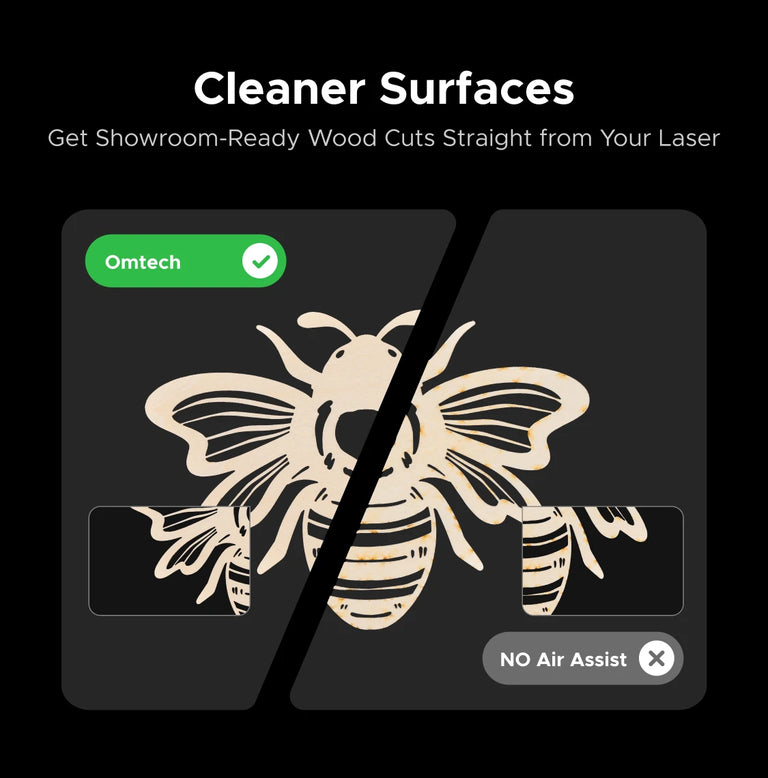 - Smoother & Cleaner Results: With this laser air assist module, your wood surfaces will come out smooth with minimal charring. Say goodbye to unsightly burn marks—your finished projects will look showroom-ready straight off the bed.