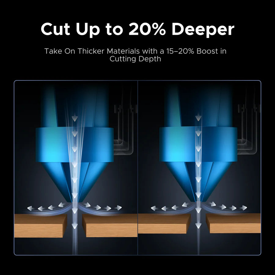 - 20% Deeper Cuts: Our CO2 laser airway module increases cutting depth by 15-20%, allowing you to tackle thick stock projects that previously required multiple passes.