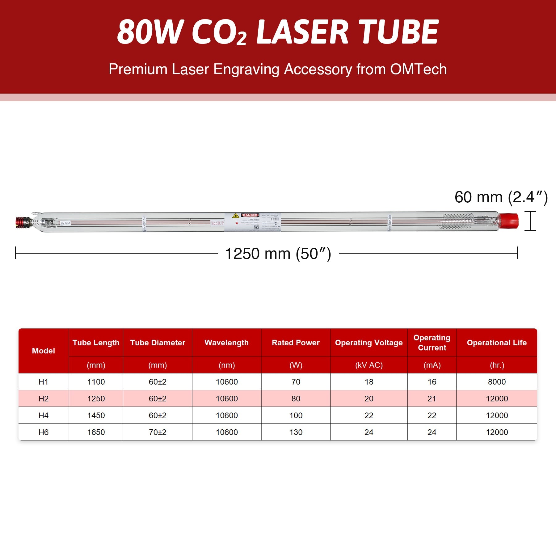80W CO2 Laser Tube for Laser Engraving Machines & Cutters | YL-80